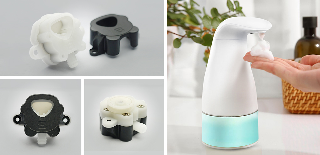 取得成效:产品应用在的自动给皂洗手液产品中,产品的流量稳定及解决产品的给皂稳定问题;
