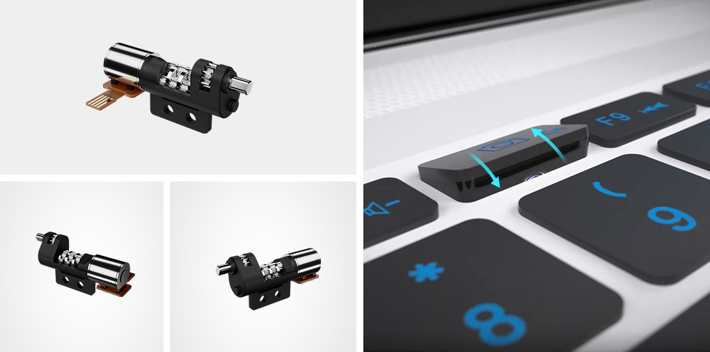 9001诚信金沙笔记本电脑摄像头翻转驱动系统采用紧凑的微型驱动结构,可在有限的空间内,输出较大力矩,满足厂家追求极致宽屏的需求。
