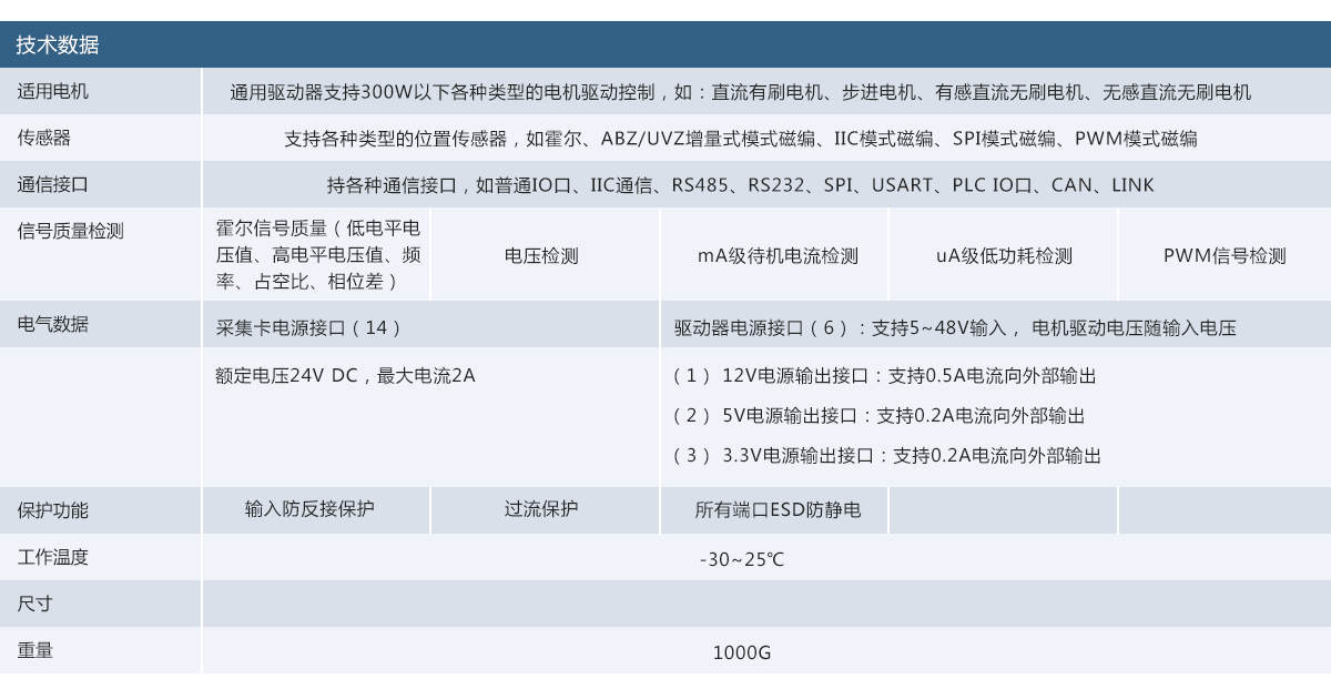 适用电机:直流有刷电机、步进电机、有感直流无刷电机、无感直流无刷电机